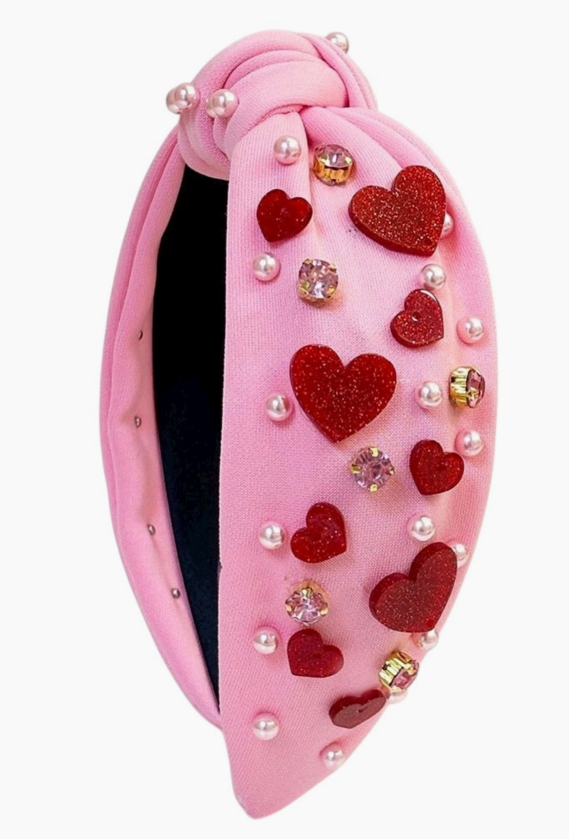 Pink Hearts Knot Headband