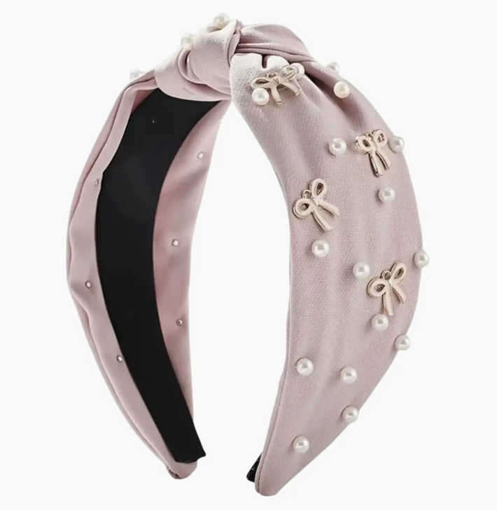 Pearl and Bow Headband Pink