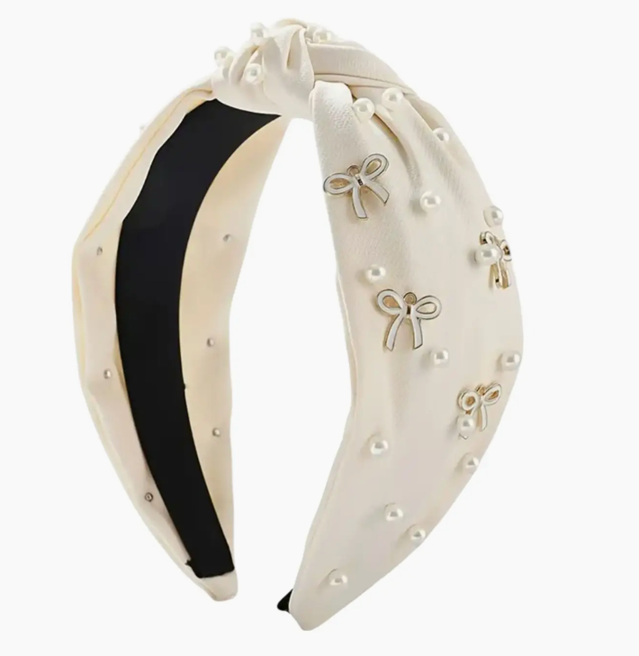 Pearl and Bow Headband White