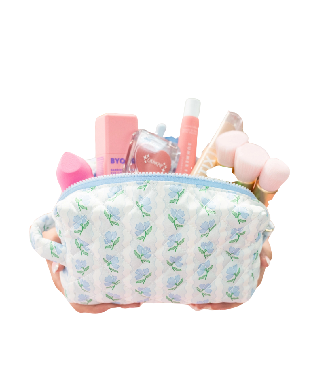 Blue Belle Floral Quilted Cosmetic Bag