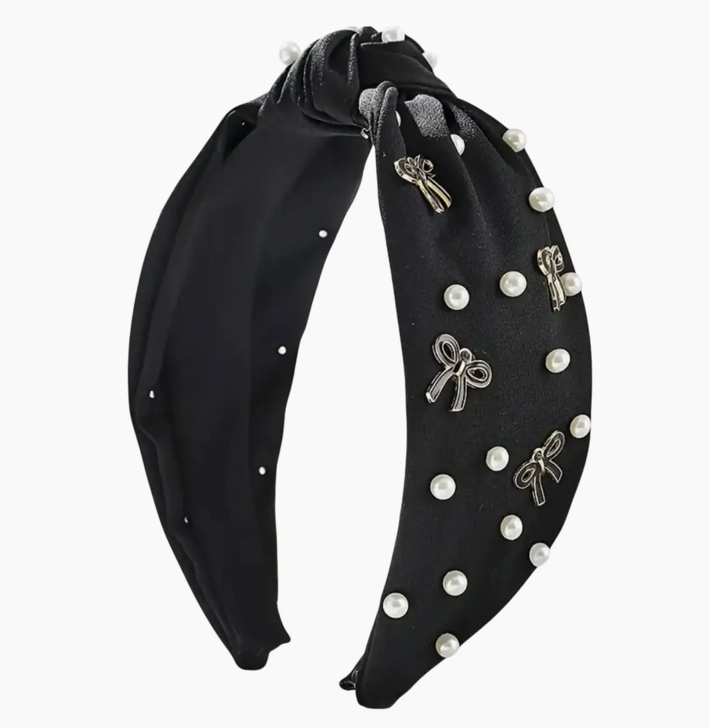 Pearl and Bow Headband Black