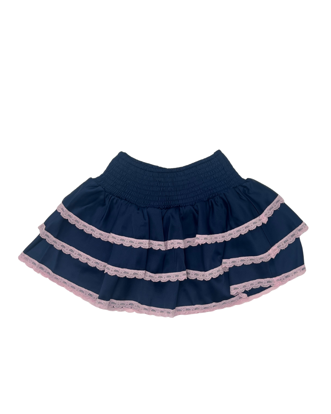 Gemma Satin Lace Mini Skirt Navy/Pink
