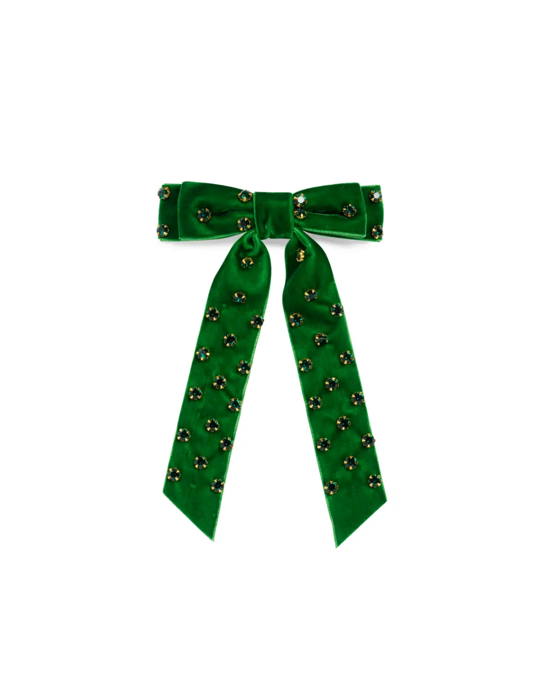 Velvet Rhinestone Bow Clip Green