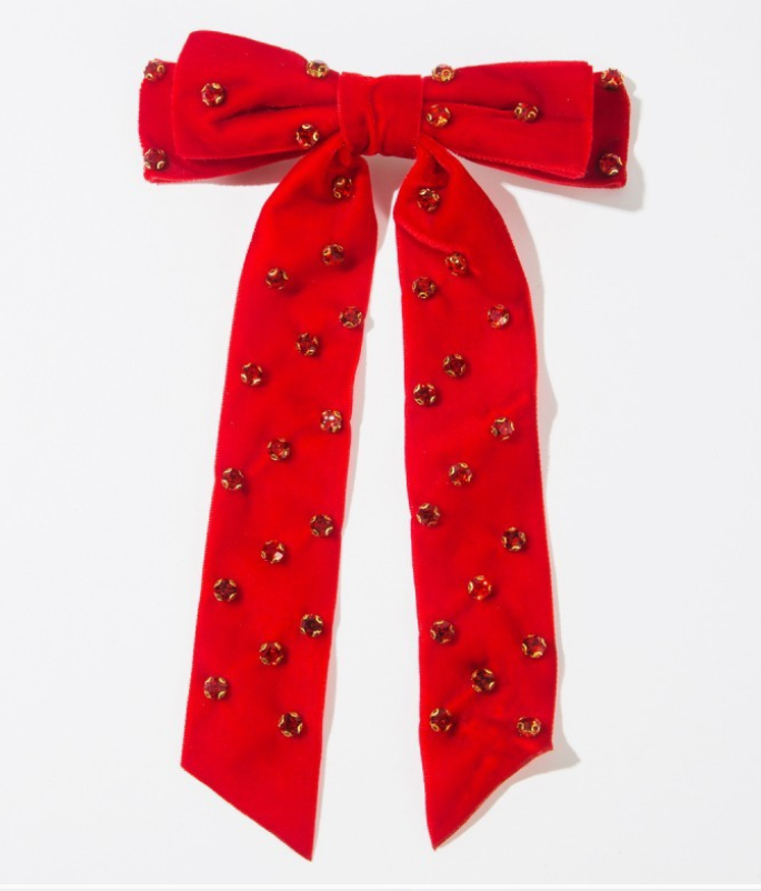 Pretty Rhinestone Bow Clip Red