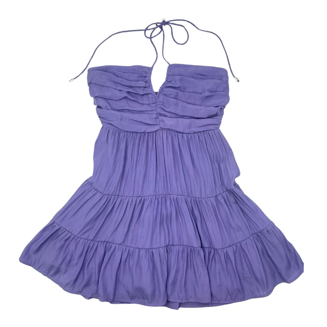 Flaunt a flirty vibe in this ruched multi-tiered halter mini dress, perfect for twirling and turning heads all season long.