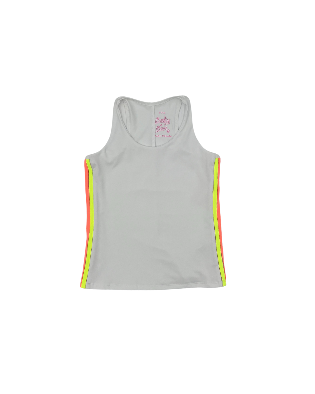 A vibrant athletic tank featuring a bold, colorful stripe on the side, adding a pop of color to your workout wardrobe. Comfortable and stylish, it’s perfect for staying active while showcasing your unique style.