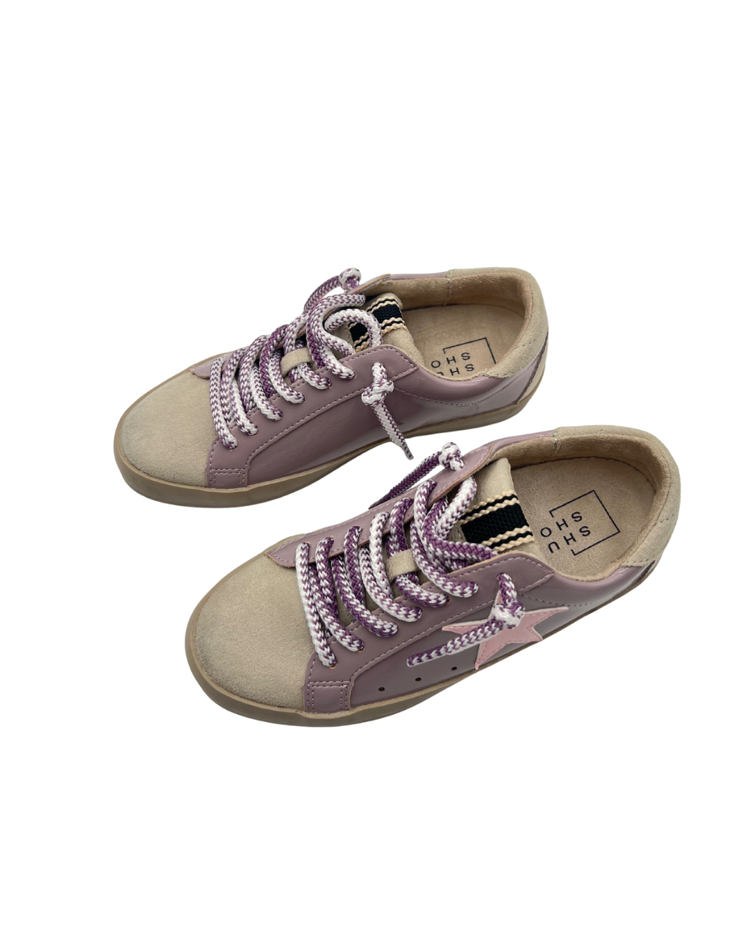 Stylish low top sneakers featuring a bold star design, perfect for adding a trendy touch to any outfit. A versatile look for tweens that can be dressed up or down! Runs generous.