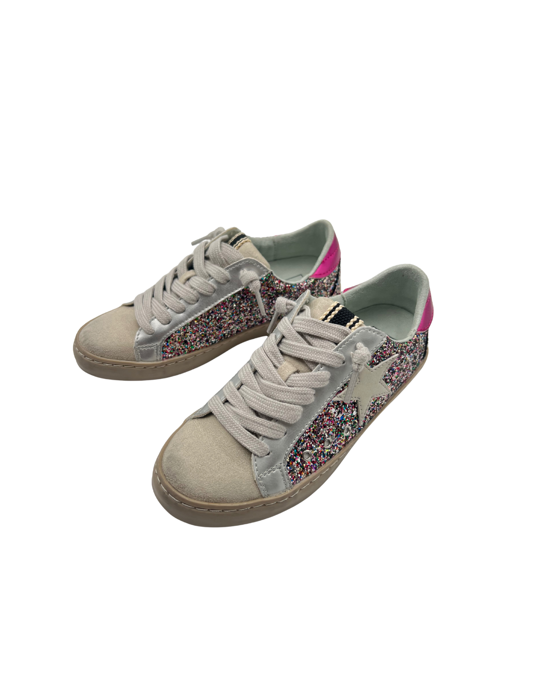 Stylish low top sneakers featuring a bold star design, perfect for adding a trendy touch to any outfit. A versatile look for tweens that can be dressed up or down! Runs generous.