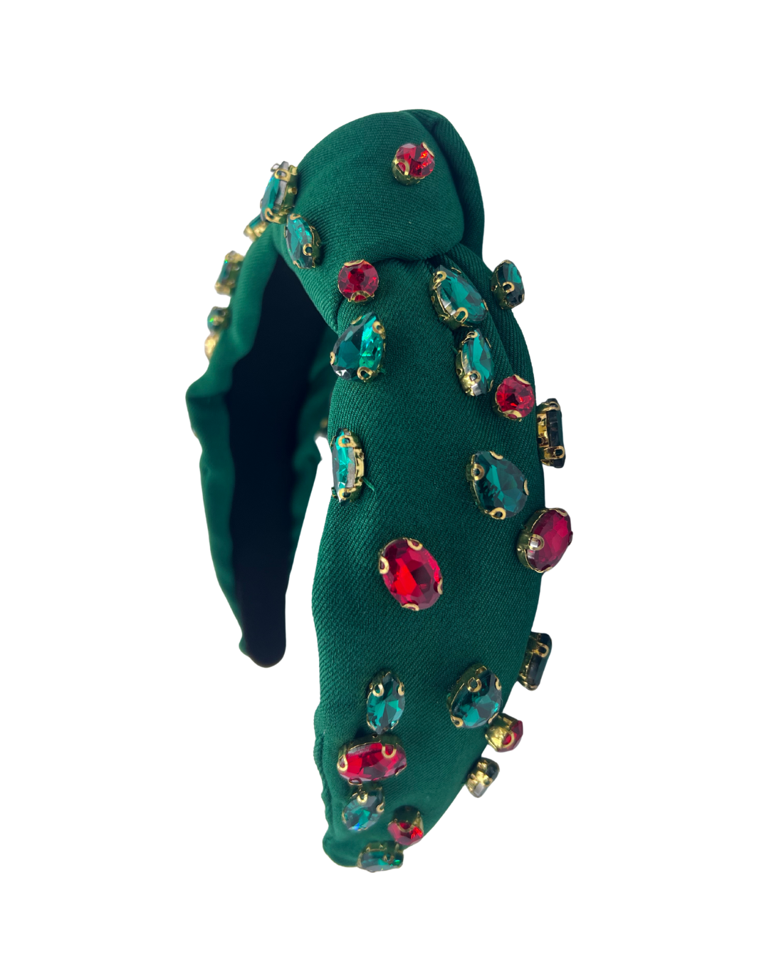 An adorable Christmas headband featuring bright gems all over! Sparkly and cute for all your holiday adventures!