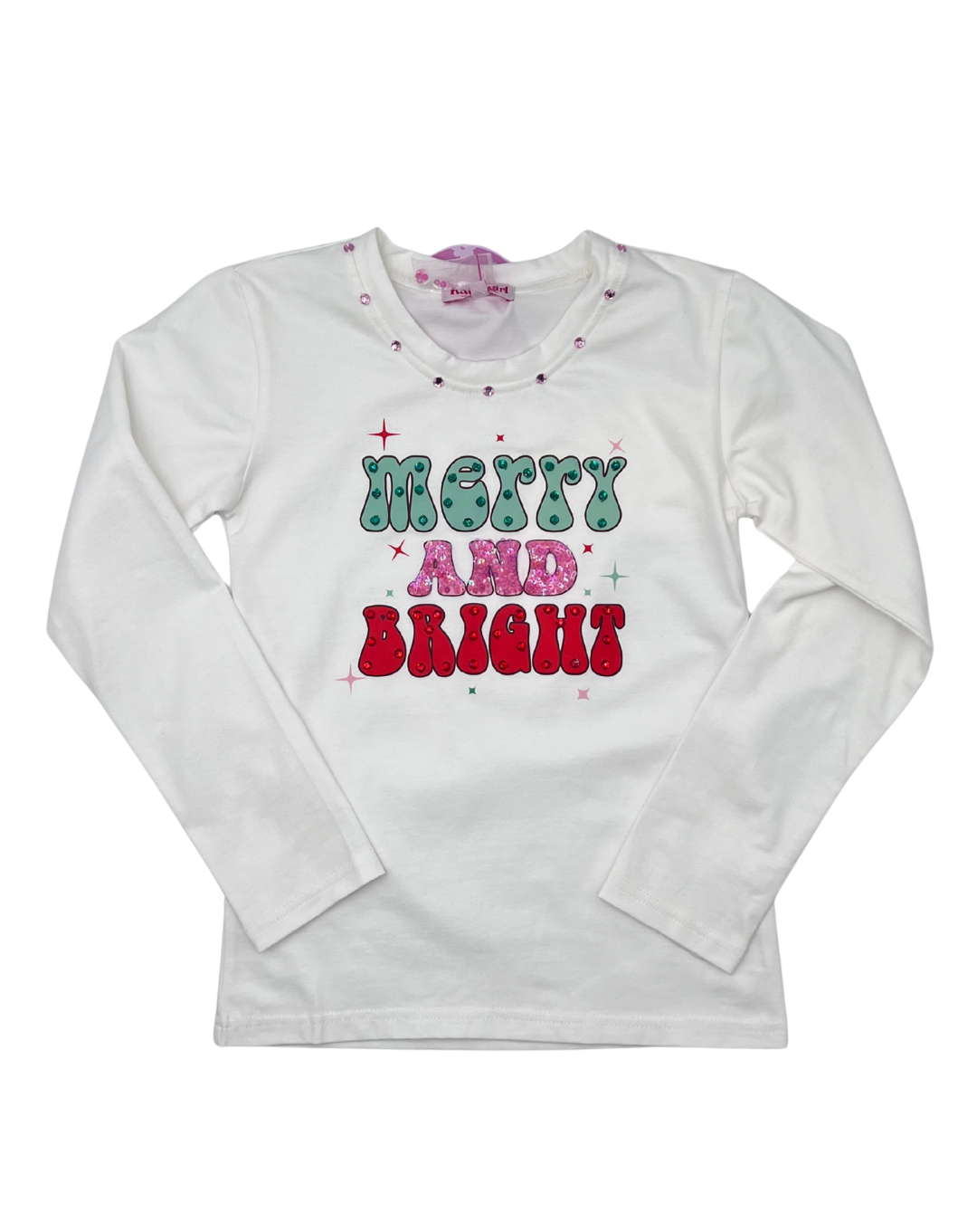 A festive Merry & Bright long sleeve tee with a comfy fit and cheerful vibe—perfect for the holiday season!