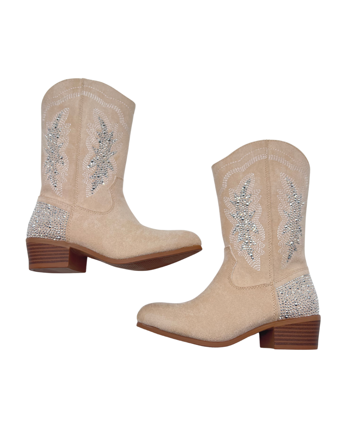 Step out in style with these cowgirl boots featuring sparkling rhinestone detailing for a bold, glam twist on a classic look.