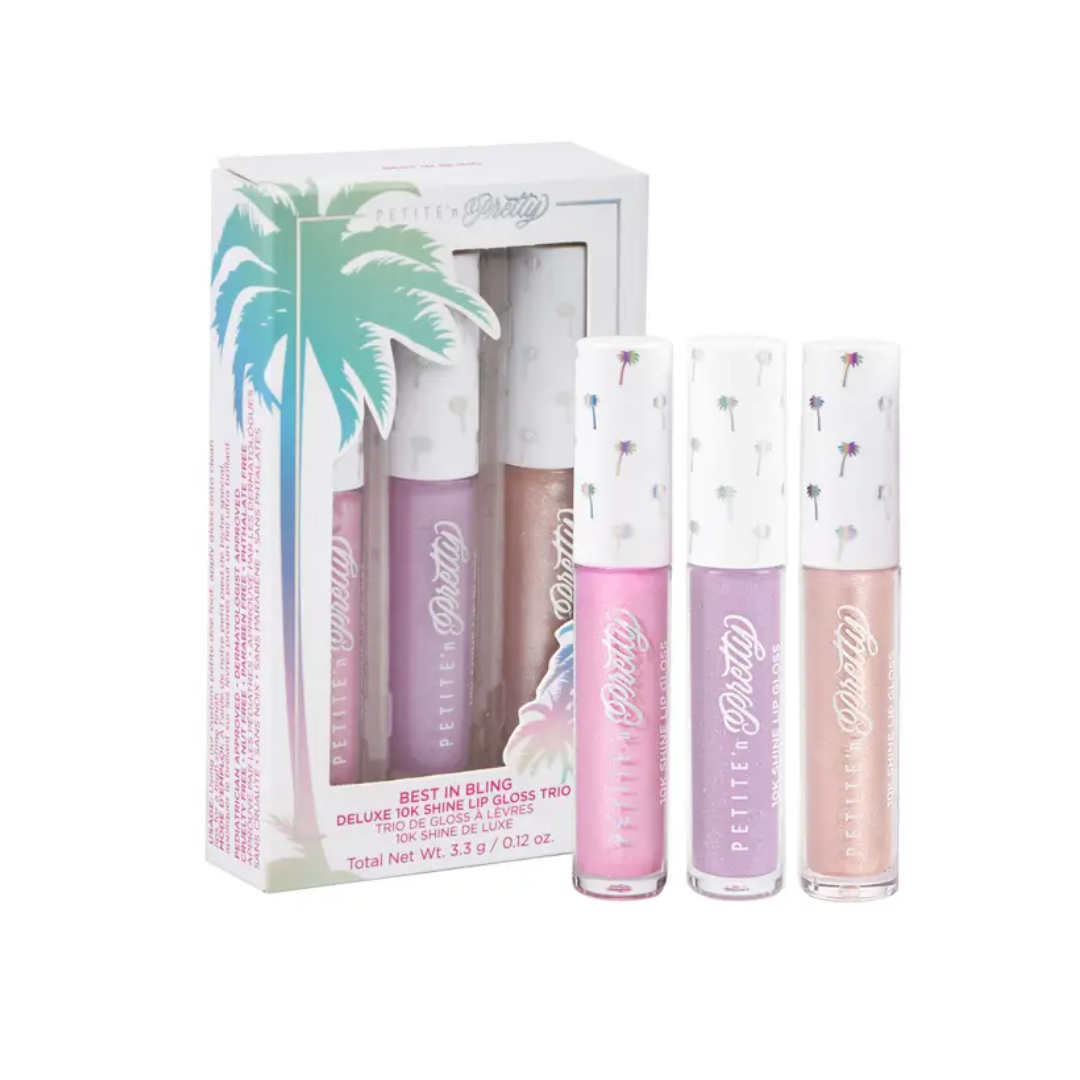 Shine bright with The Gloss Boss! This set of best-selling 10K Shine shades—Gia Pink, Glow Down, and Glamethyst—offers high-shine, non-sticky perfection with a sweet cotton candy taste. Perfect for every look, from pastels to holographic hues. Bling it on!