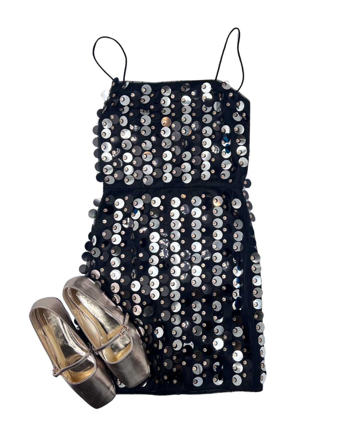 This disco sequin dress shines bright with allover sparkles—perfect for parties, dancing, and making a statement.