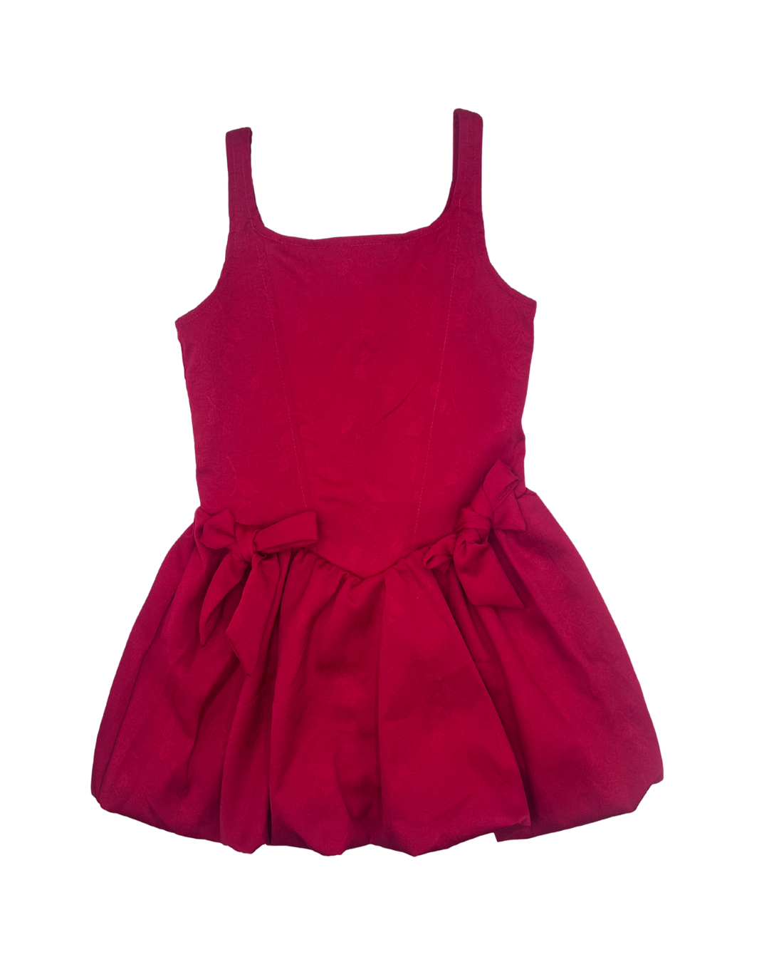 The perfect holiday dress! An appropriate fit with subtle floral print and tasteful bows.
