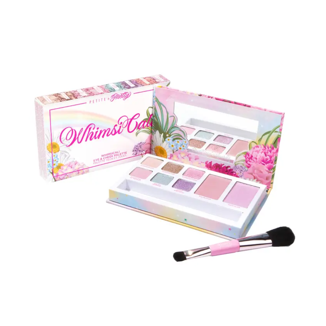 Let your creativity bloom with the WhimsiCali Eye & Cheek Palette! Featuring pastel eyeshadows, rose-garden pink blush, and a crystalline violet highlighter, this pediatrician-approved makeup set is perfect for tweens and teens. Includes a dual-ended brush for effortless application.